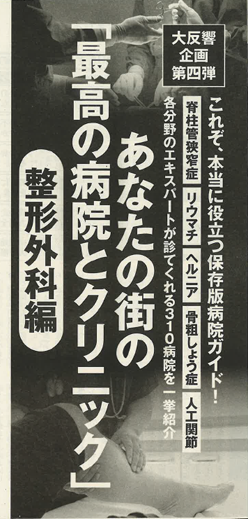 週刊現代1/19号『あなたの街の最高の病院とクリニック 整形外科編』に